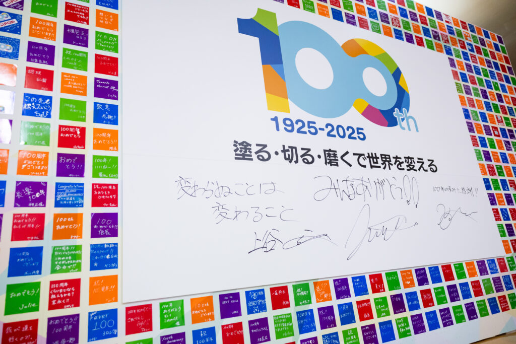 マイポックスは1925年にドイツ・レイボルト商館の子会社として創業した後、現社長の祖父にあたる渡邉惣吉氏へ資本をバトンタッチ、その後は精密研磨材専業メーカーとして発展を経て、2000年初頭からはコア技術である『塗る』をサービスとして提供するエンジニアリングサービス(受託塗布)を開始。さらに『磨く』をサービスとして提供するウエハープロセス(受託研磨)を立ち上げ、「塗る・切る・磨くで世界を変える」に取り組んでいる会社だ。昨年11月に創業から100年を迎えたが、『100年ベンチャー』を掲げ、変化しつづける集団である。現在は渡邉淳さんがマイポックスの代表取締役社長として会社を率いている。